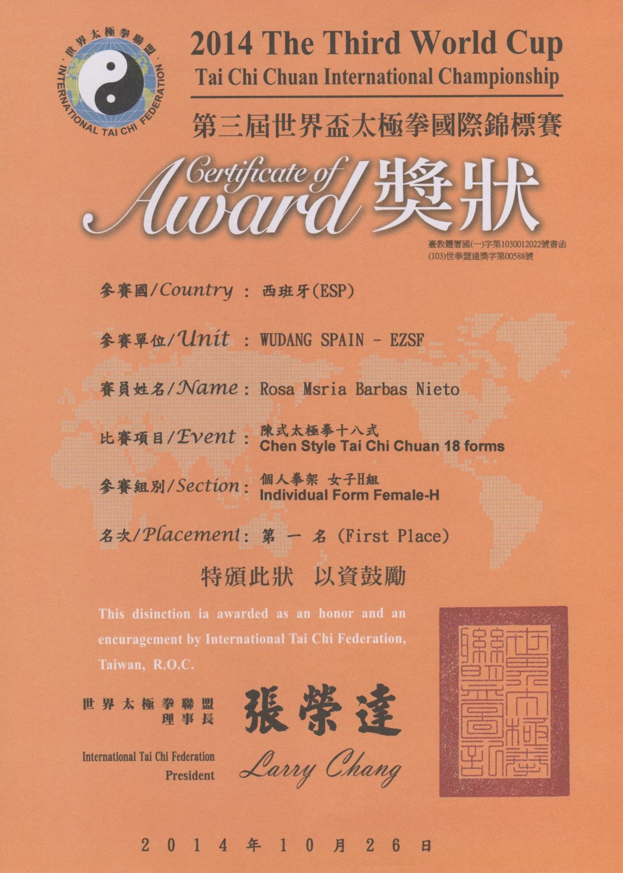 The Third World Cup Tai Chi Chuan International Championship.Taiwan, 25 de Noviembre de 2014 ![]()